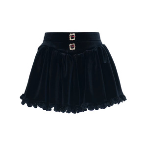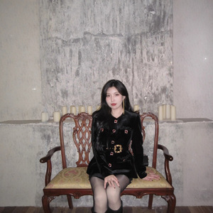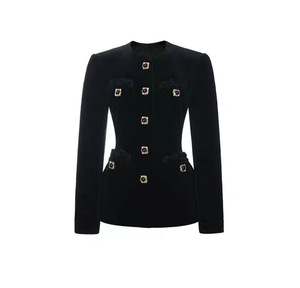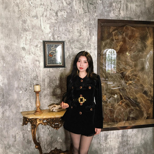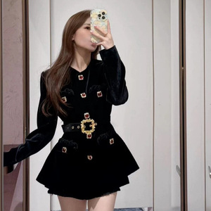 拉家同款2025秋冬新款宫廷鎏光宝石扣老钱风丝绒收腰显瘦外套短裤