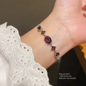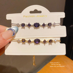法式超闪锆石椭圆抽拉式手链时尚优雅百搭通勤手环轻奢高级感手饰