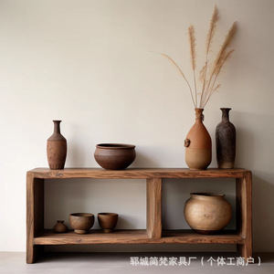 诧寂风博古架实木多层储物柜客厅陶瓷花瓶展示架老榆木茶具餐边柜