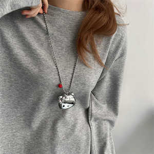 简约金属风银色Kitty猫吊坠项链女小众y2k朋克潮流锁骨链毛衣链