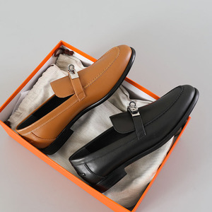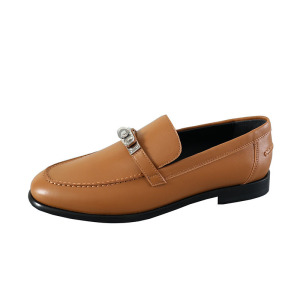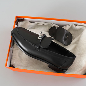 2025欧洲顶版纯原金属扣小牛皮乐福鞋一脚蹬低跟英伦风浅口女单鞋