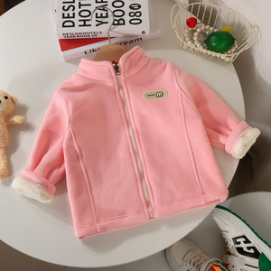 儿童奥粒绒外套新款男女中大童秋冬季加绒加厚双面绒开衫校服内胆