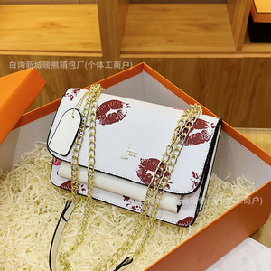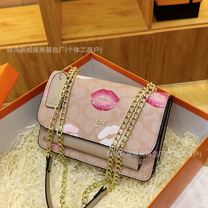 bags蔻家2025新款跨境简约印花单肩包女包拼色时尚风格单肩斜挎包