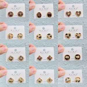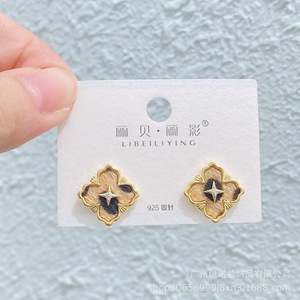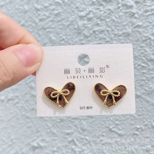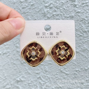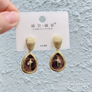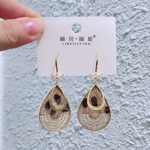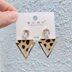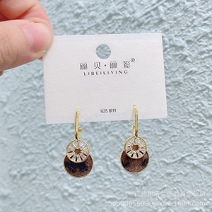 丽银/丽贝丽影早秋新款豹纹马毛系列棕色耳环几何造型925银针耳饰