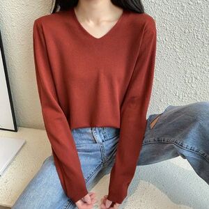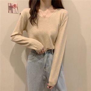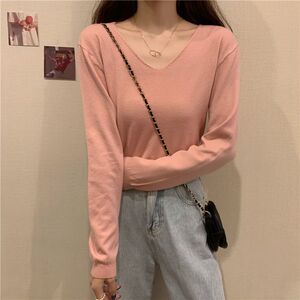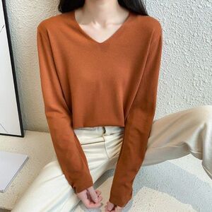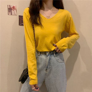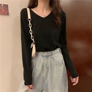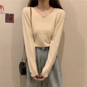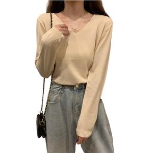 v领针织长袖白色t恤女2025年春秋季新款修身外穿打底衫女内搭上衣