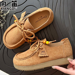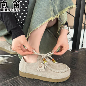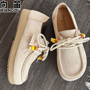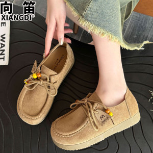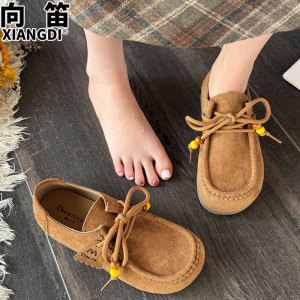 真皮软底踩屎感袋鼠鞋女款全包勃肯鞋子女2025秋季新款单鞋乐福鞋
