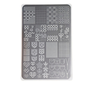 新款跨境美甲转印钢板牛仔格纹花纹花法式蕾丝花边印花板硅胶印章