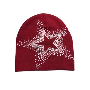 跨境新款秋冬时尚百搭毛线帽防寒保暖针织帽欧美潮流字母提花冷帽