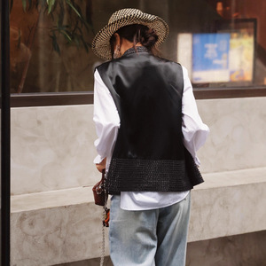 2025秋季新中式篙端设计满天星重工钉珠醋酸马甲好看背心叠穿上衣