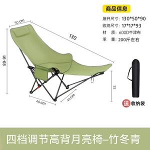 四档调节户外月亮椅带脚托露营椅椅子折叠躺椅午休钓鱼便携式躺椅