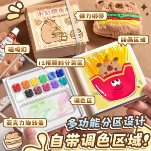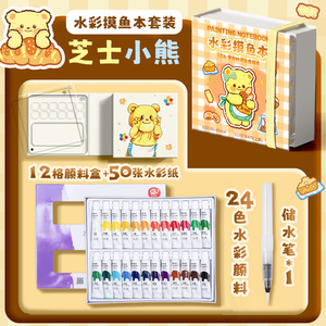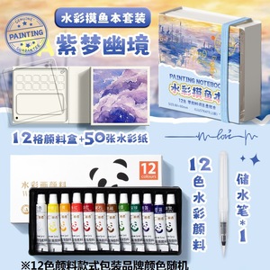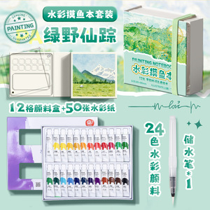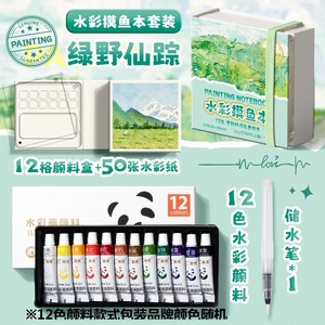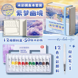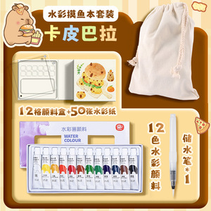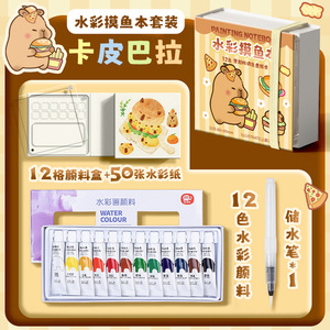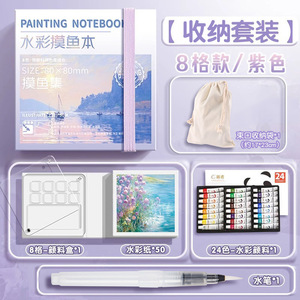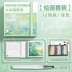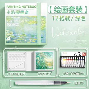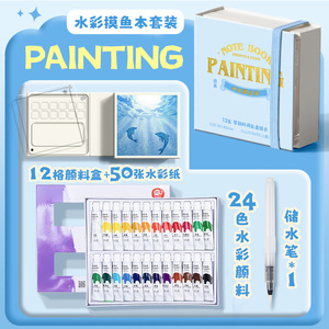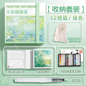 水彩摸鱼本颜料收纳套装画本写生便携调色画板加厚空白迷你小本子