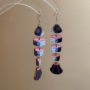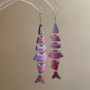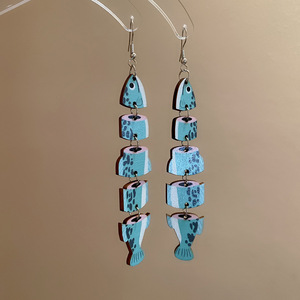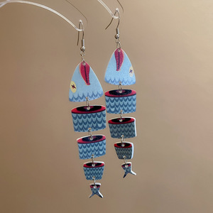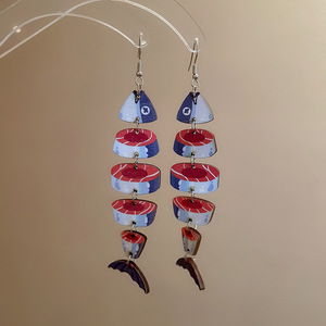 木头印花小鱼吊坠耳环小众设计独特耳钩个性时尚度假风耳饰批发女