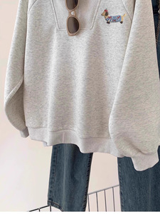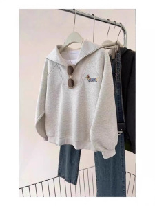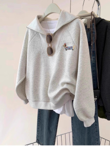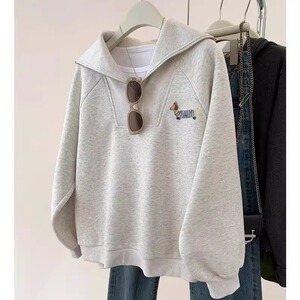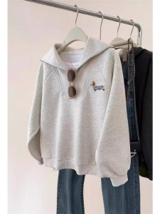 哥家商场同款女装2025秋季灰色翻领半拉链套头卫衣慵懒风外套上衣