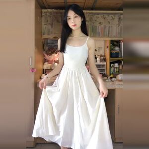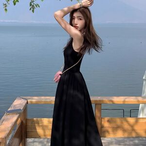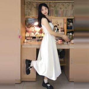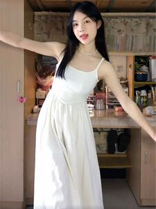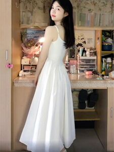夏季高级新款长裙赫本白裙无袖白色裙子法式收腰气质吊带连衣裙LD