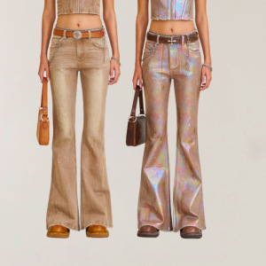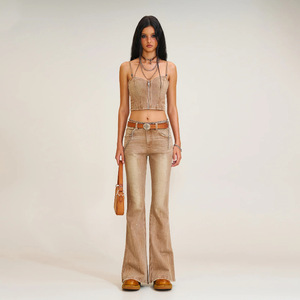 SMFK荒野飓风手工喇叭牛仔裤弹力修身中腰微喇裤25新款