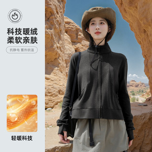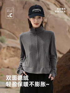 2025秋冬季女款抓绒衣户外运动休闲时尚双面德绒立领保暖开衫外套