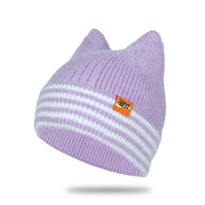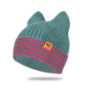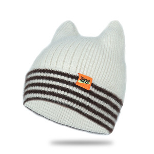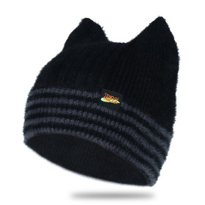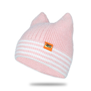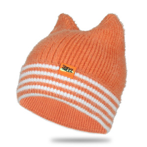 跨境针织帽秋冬季毛线帽休闲百搭包头帽韩版套头帽可爱耳朵帽户外