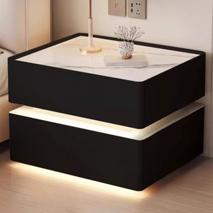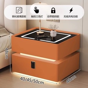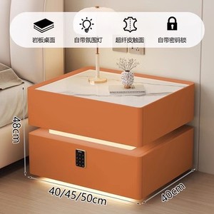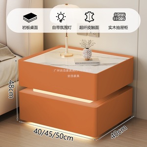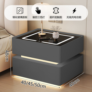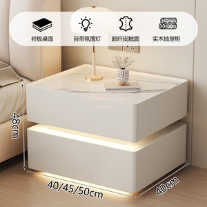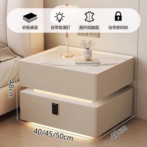 实木智能床头柜简约现代岩板卧室家用轻奢高级免安装床边柜奶油风
