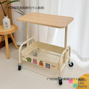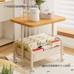 可移动小推车沙发边几储物架简易餐桌台复古床头柜置物架客厅茶几