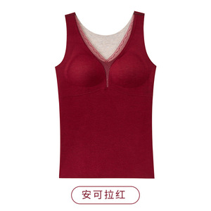 2025秋冬蚕丝羊毛保暖背心免穿文胸提拉上托罩杯一体打底百搭上衣
