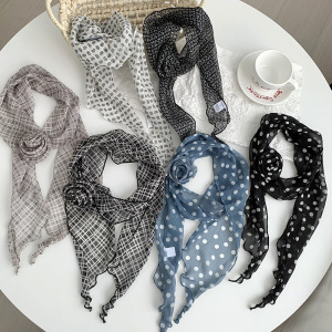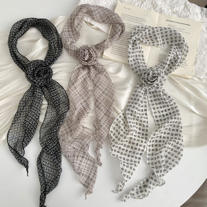 高级感小领巾复古腰果波点条纹玫瑰花丝巾女气质轻奢时尚飘带围脖
