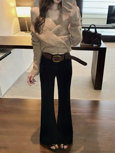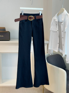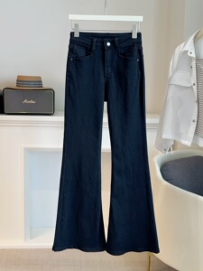 黑色修身弹力微喇牛仔裤女秋季2025新款高腰显瘦小个子提臀喇叭裤
