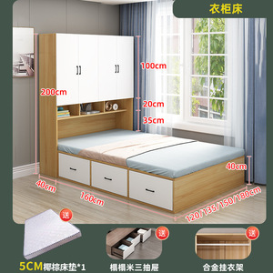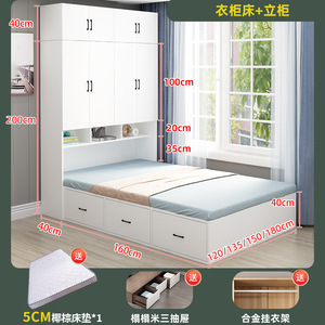 榻榻米衣柜床一体小户型多功能储物床省空间衣帽间组合衣柜儿童床