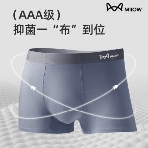 MiiOW/猫人50支莫代尔男士内裤石墨烯抑菌裆透气无痕男士平角裤头