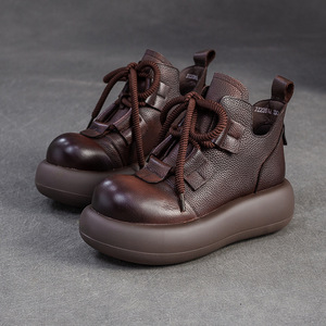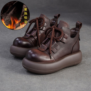 杰骤2025秋冬新款英伦风百搭短靴设计感单靴头层牛皮厚底舒适女鞋