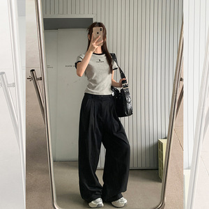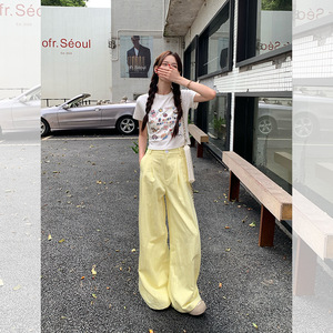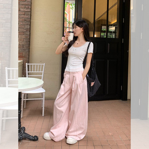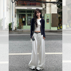 宋正恩白色垂感阔腿裤女夏季小个子高腰显瘦休闲裤拖地宽松白裤子