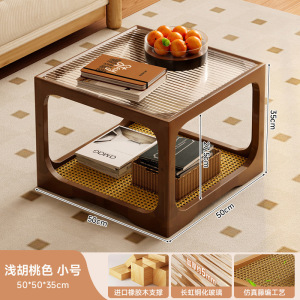实木玻璃茶几客厅家用小户型茶桌2025新款方形组合边几藤编小茶台