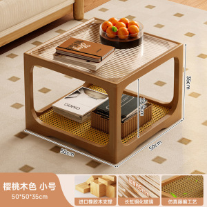 纯实木芯【0.5米小茶几】樱桃木色50*50cm5mm特厚钢化出口品质