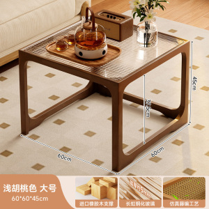 纯实木芯【0.5米小茶几】胡桃色50*50cm5mm特厚钢化玻出口品质