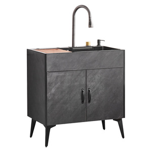 厨房不锈钢洗菜盆一体柜子洗碗池出租房家用简易落地橱柜跨境批发