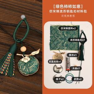 手工宋锦柿柿如意钥匙扣材料包配件diy钥匙扣中秋节摆地摊小商品