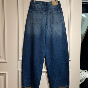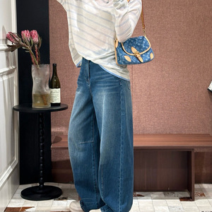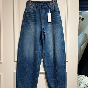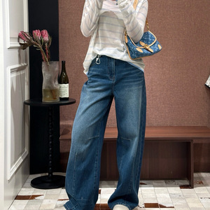 0812x5~ 时尚简约韩系百搭宽松显瘦水洗女士高腰阔腿弯刀牛仔裤