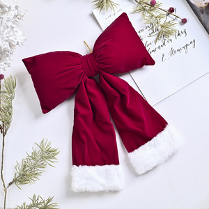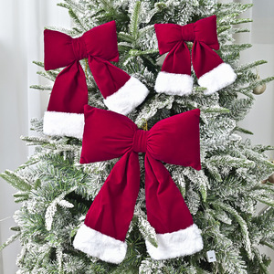 跨境圣诞氛围感布艺圣诞配色立体充棉绒布大号蝴蝶结圣诞树装饰