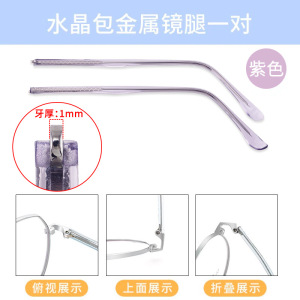 眼镜框架男女眼睛脚腿通用防过敏镜腿水晶素壳金属腿配件1MM牙厚