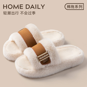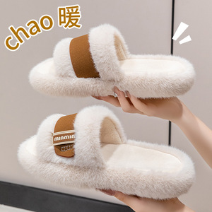 毛毛拖鞋女外穿2025秋冬新款豆豆鞋一脚蹬真毛懒人棉鞋平底半拖鞋