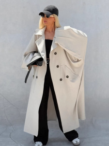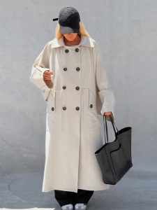 法式通勤时尚长款风衣外套女2025秋冬高级感卡其色双排扣大衣女装