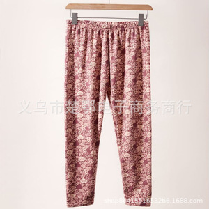 春秋冬季中老年德绒印花碎花打底裤女士外穿高腰弹力保暖秋裤内衣