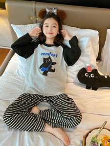 女童纯棉睡衣春秋2025新款初中生女孩网红爆款家居服儿童长袖套装