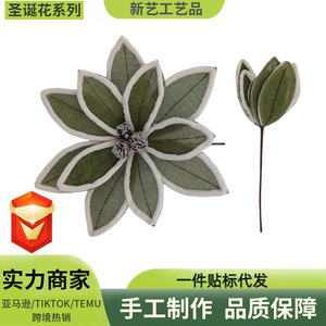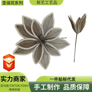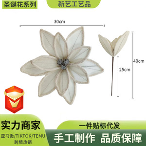 仿真花系列绒布仿真圣诞花28cm金色香槟色圣诞花圣诞树装饰花
