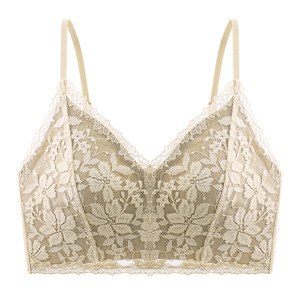 法式V领蕾丝小吊带三角杯内衣纯欲风内搭美背聚拢薄款背心文胸罩