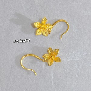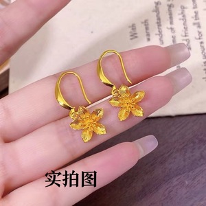 金店同款幸福花嫁三生花耳环黄金色耳饰中国风锦簇仿真三金耳钉