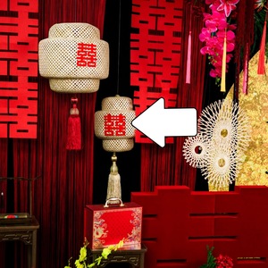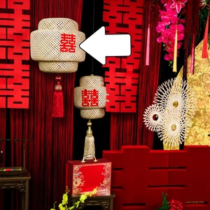新中式婚纱摄影喜嫁风拍摄道具藤编镂空灯笼红背景装饰竹编灯笼猫