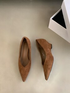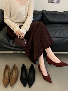 法式小众棕色单鞋女鞋子2025春秋坡跟气质尖头通勤晚晚奶奶鞋