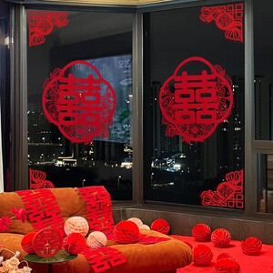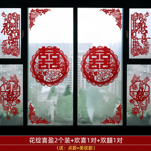 窗户喜字贴玻璃布置婚房客厅大喜字植绒订婚结婚专用全套拍照道具