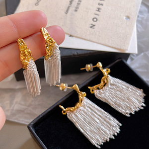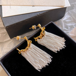 S925纯白银针长款流苏波光粼粼耳环女真金电镀几何形高级感耳钉
