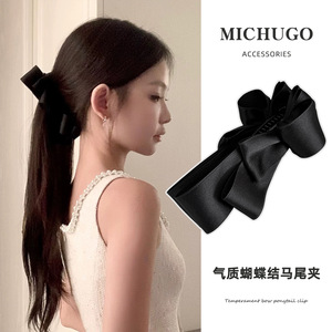 韩系气质黑色蝴蝶结发夹女后脑勺马尾夹子网红新款竖夹发卡发饰夏